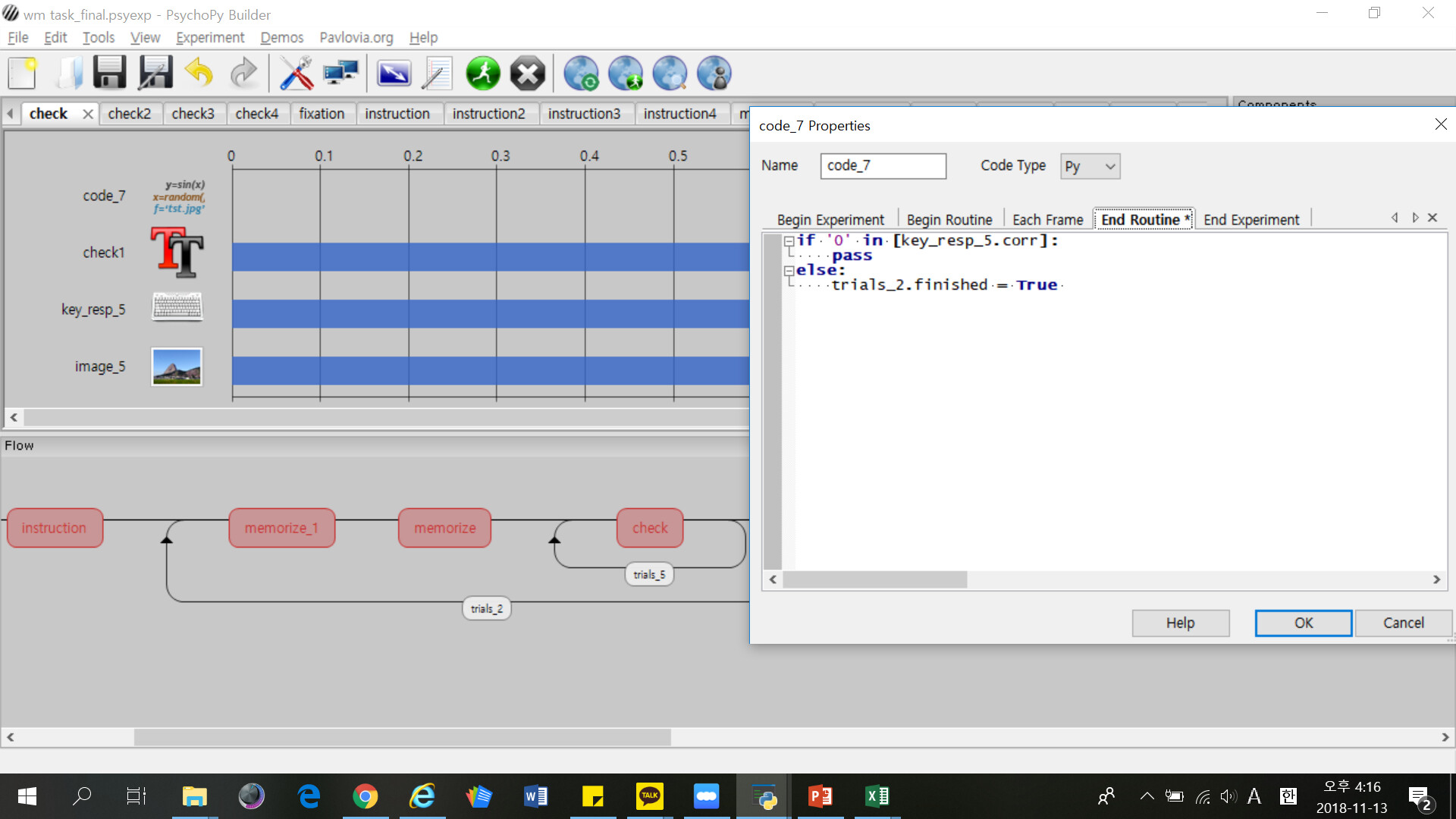 Flow and the code I inserted for ending trial is as below.
